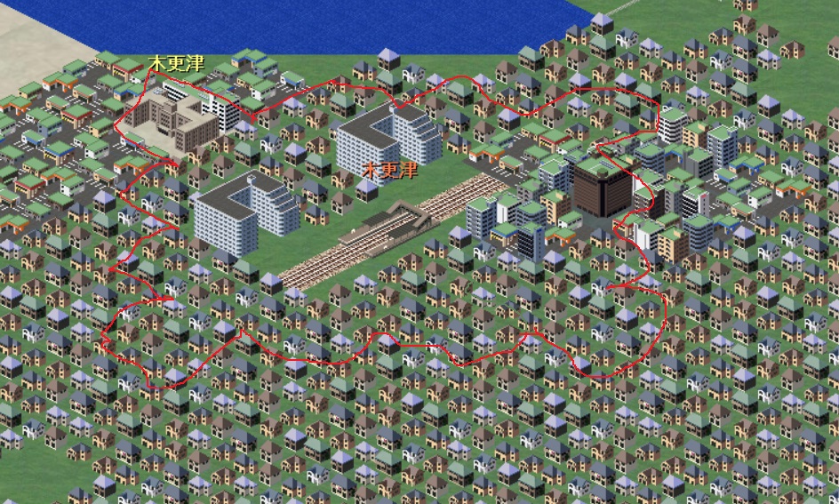 木更津駅はここの位置に設置すると最大限の効果を挙げられます(マンション2軒を2マス圏内にしつつ官公庁・繁華街も射程圏内)。