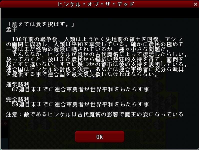 なお、今回マップはこれまでのシナリオの勇者役だったヒンケルが魔王側になっている。