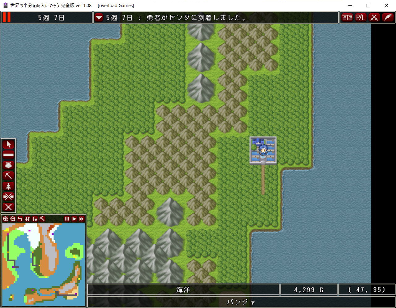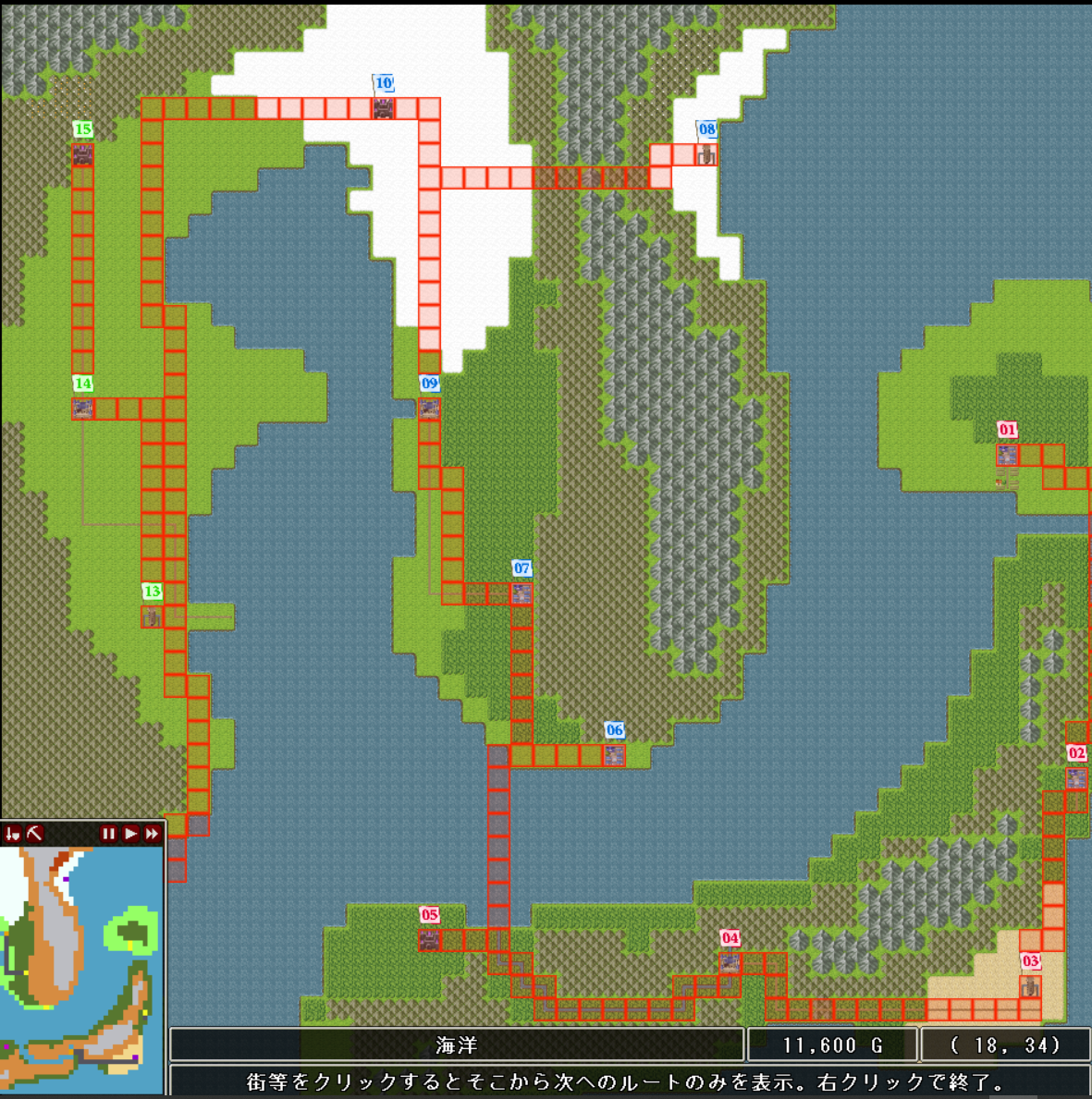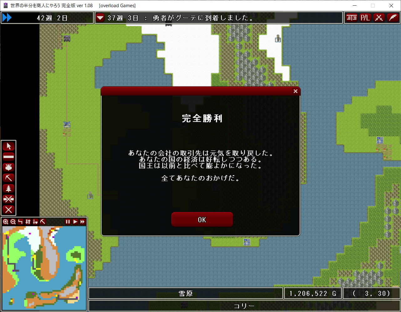 15週6日、グーテ近郊に伐採所を設置し、伐採所→木工場→こん棒のサプライチェーンを確立。ナシオンの町に武器屋を建設。こん棒の販売を開始。