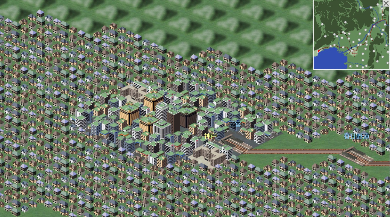 名古屋マップと比べても沿線人口が増えにくい。工場誘致戦略が有効…なのだが、今津線から武庫川方向に伸ばすだけだと阪神側だけやたらと家が増えることに。今津線が安定したら西宮~神戸だけでも需要を奪おう。