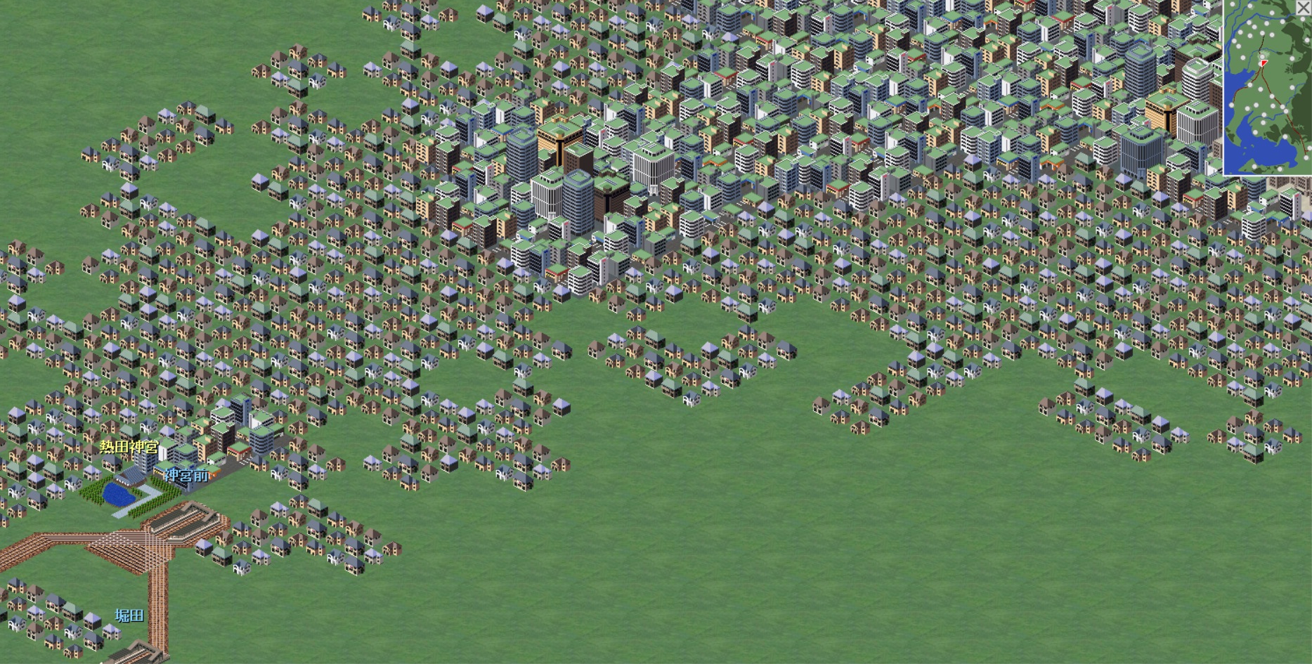 このシナリオでは商業地区の面積が広く、沿線に住宅が建ちやすい。